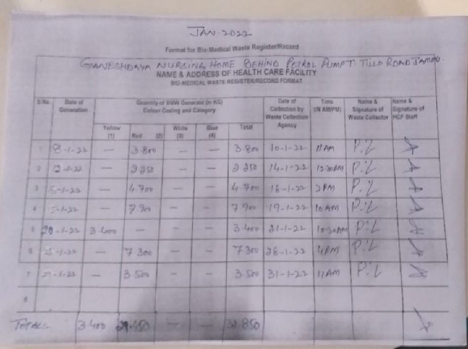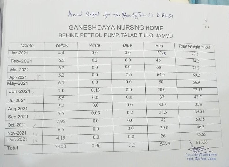 Monthly Report of Bio Medical Waste for the Month of January 2022.