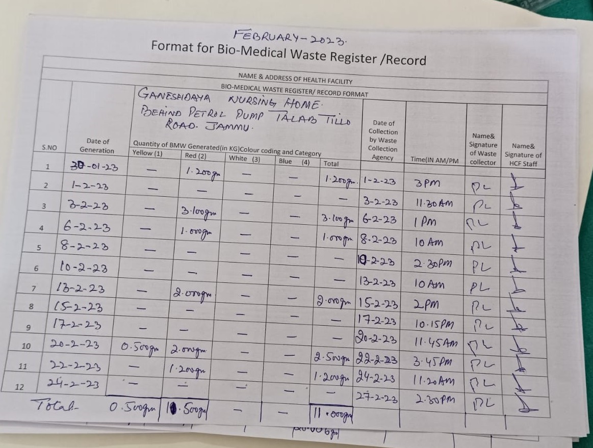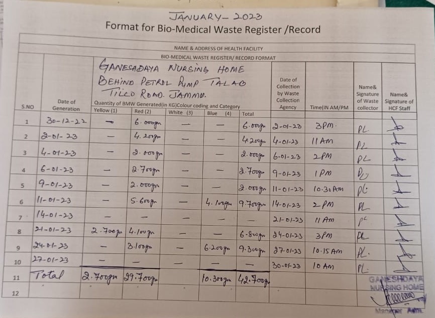 Monthly Report of Bio Medical Waste for the Month of January 2023.