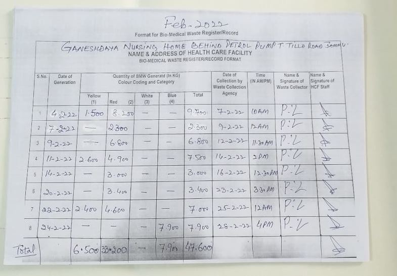 Monthly Report of Bio Medical Waste for the Month of February 2022.