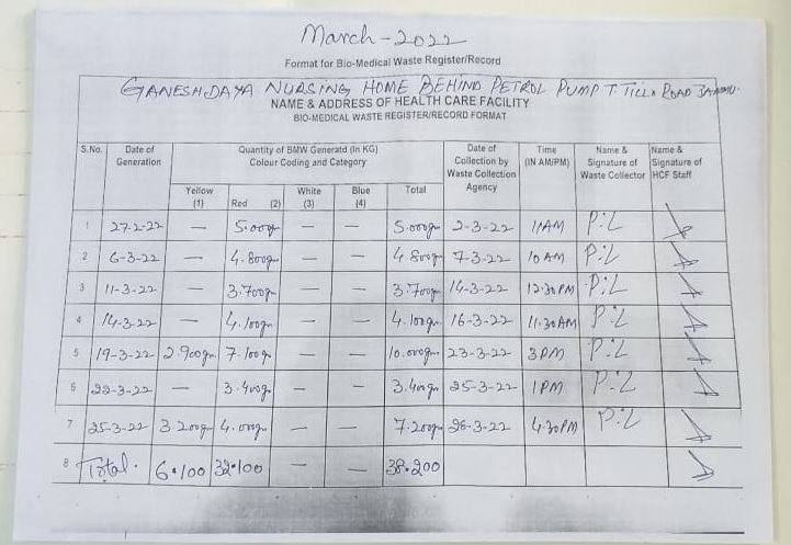 Monthly Report of Bio Medical Waste for the Month of March 2022.