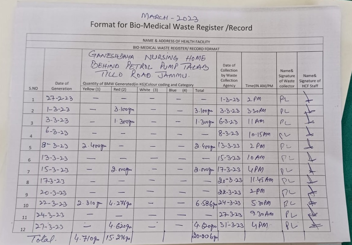 Monthly Report of Bio Medical Waste for the Month of March 2023.
