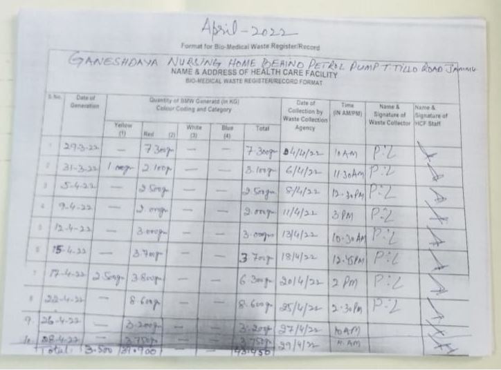 Monthly Report of Bio Medical Waste for the Month of April 2022.