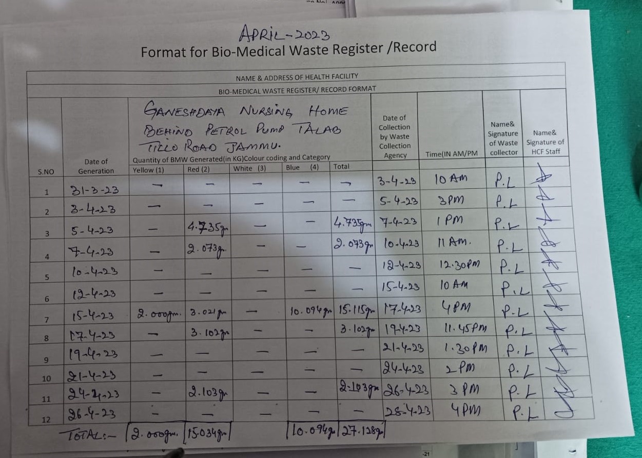 Monthly Report of Bio Medical Waste for the Month of April 2023.