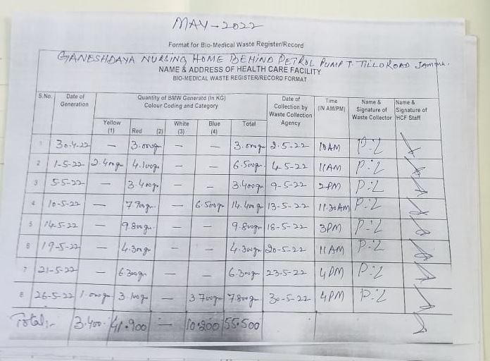Monthly Report of Bio Medical Waste for the Month of May 2022.