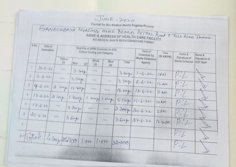 Monthly Report of Bio Medical Waste for the Month of June 2022.