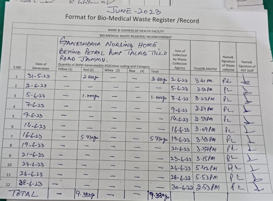Monthly Report of Bio Medical Waste for the Month of June 2023.