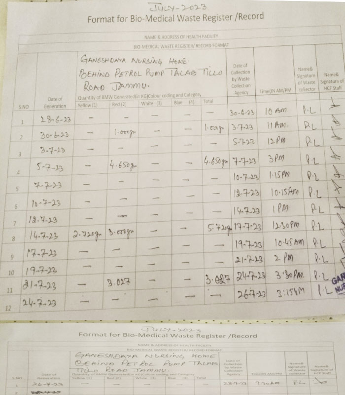 Monthly Report of Bio Medical Waste for the Month of July 2023.