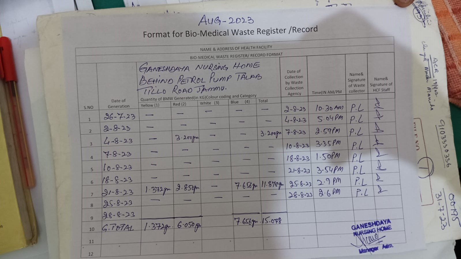 Monthly Report of Bio Medical Waste for the Month of August 2023.