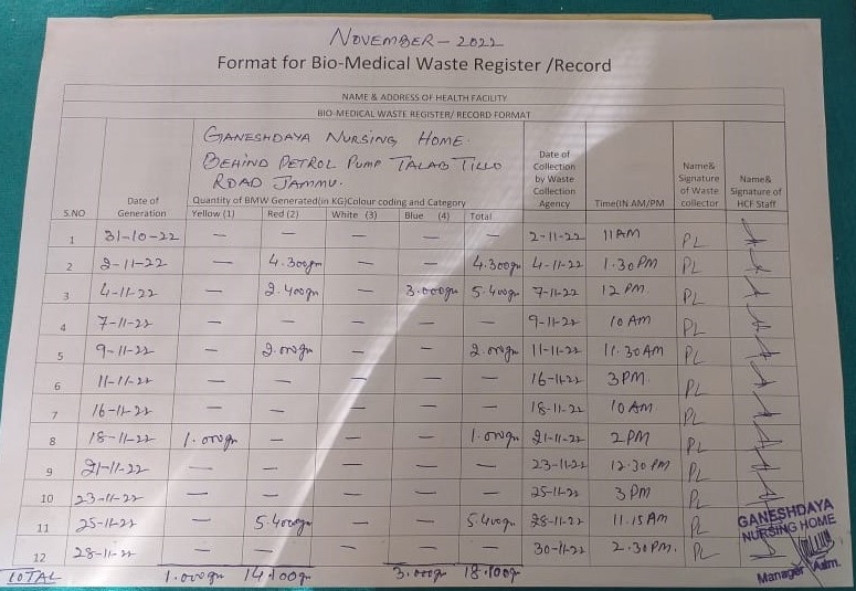 Monthly Report of Bio Medical Waste for the Month of November 2022.