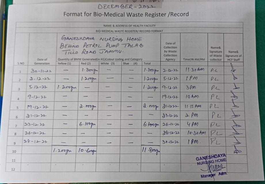 Monthly Report of Bio Medical Waste for the Month of December 2022.