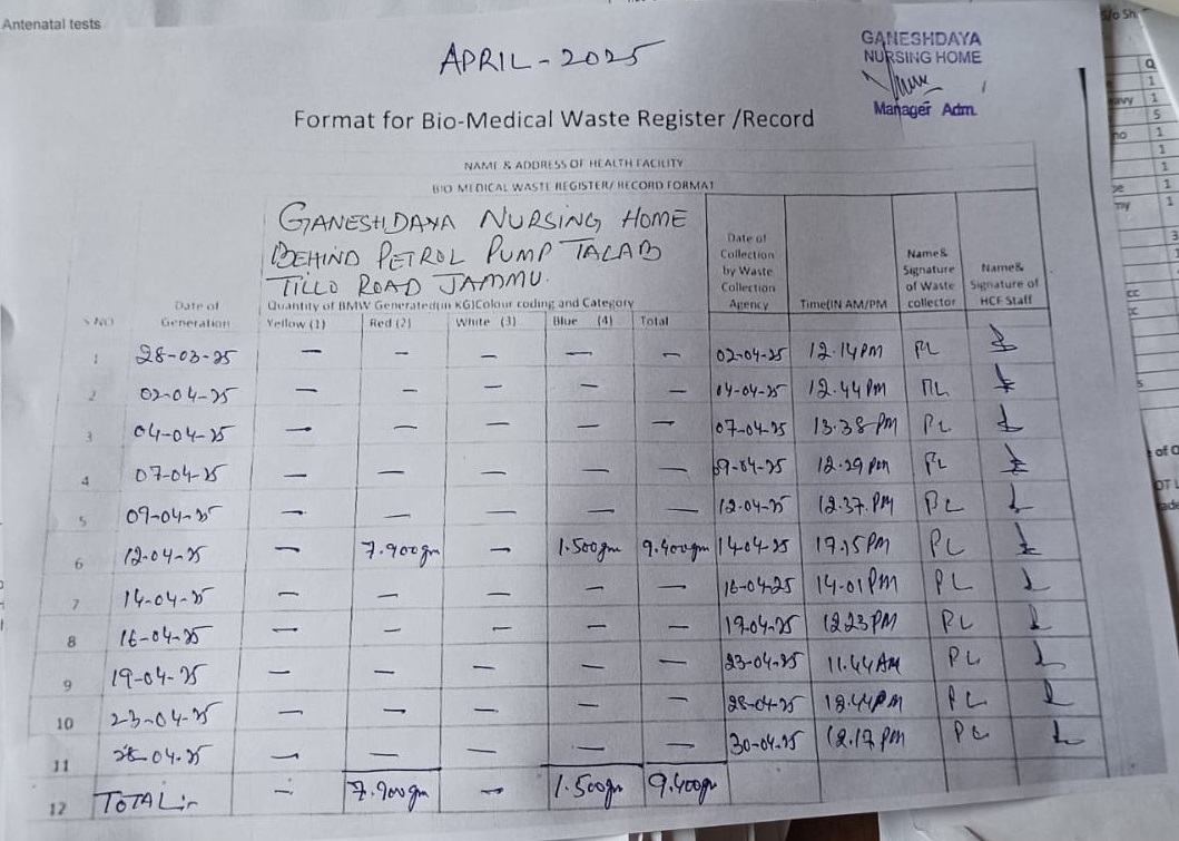 Monthly Report of Bio Medical Waste from the Month of April 2025.