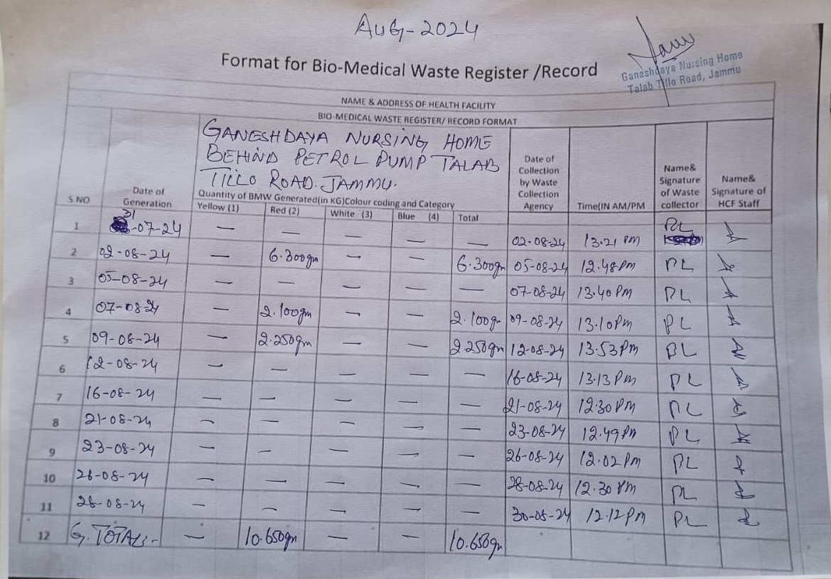 Monthly Report of Bio Medical Waste from the Month of July 2024.