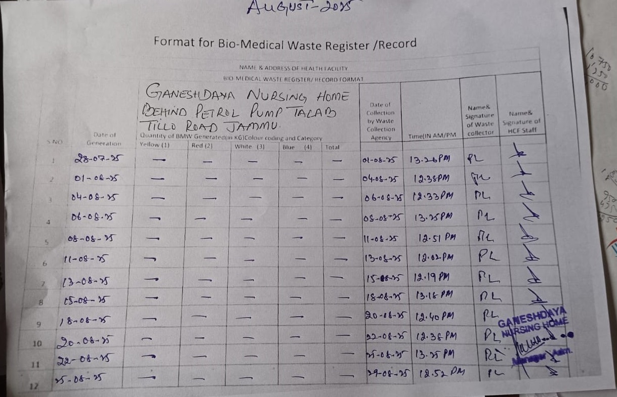 Monthly Report of Bio Medical Waste from the Month of July 2025.