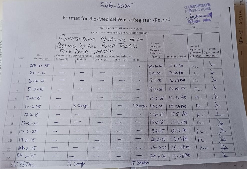 Monthly Report of Bio Medical Waste from the Month of February 2025.