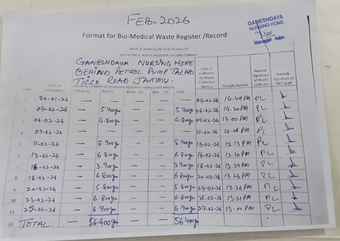 Monthly Report of Bio Medical Waste from the Month of February 2026.