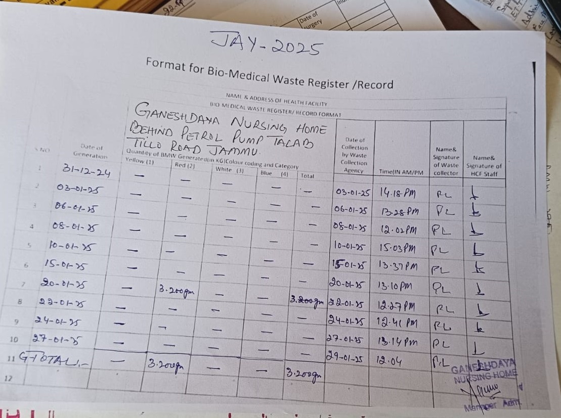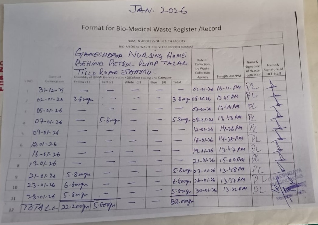 Monthly Report of Bio Medical Waste from the Month of January 2025.
