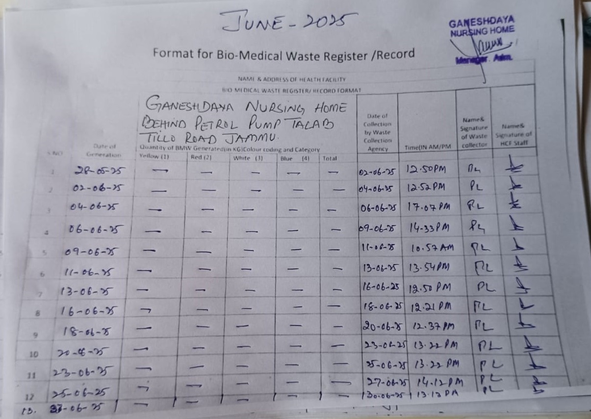 Monthly Report of Bio Medical Waste from the Month of June 2025.