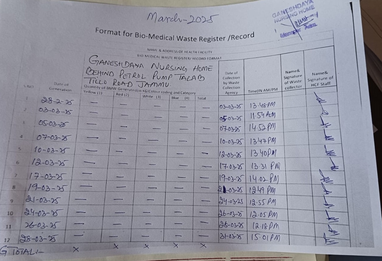 Monthly Report of Bio Medical Waste from the Month of March 2025.