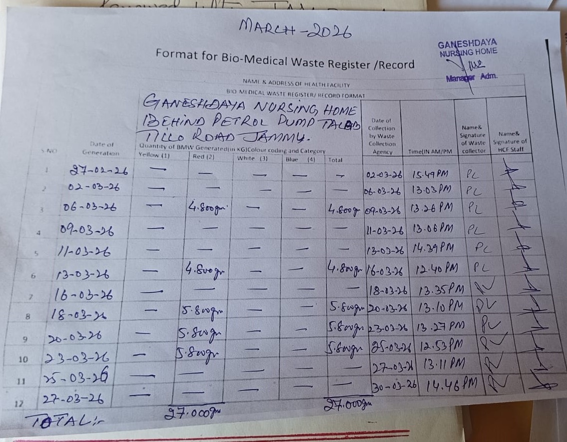 Monthly Report of Bio Medical Waste from the Month of March 2026.
