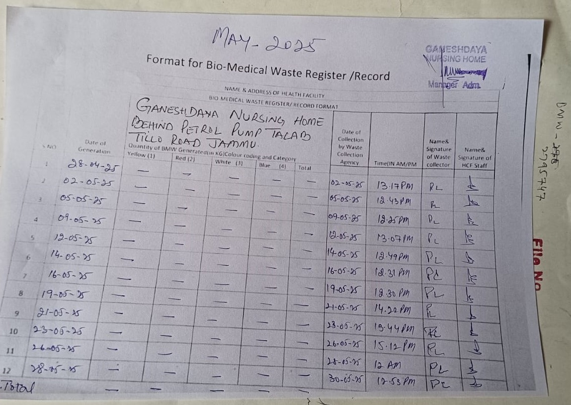 Monthly Report of Bio Medical Waste from the Month of May 2025.