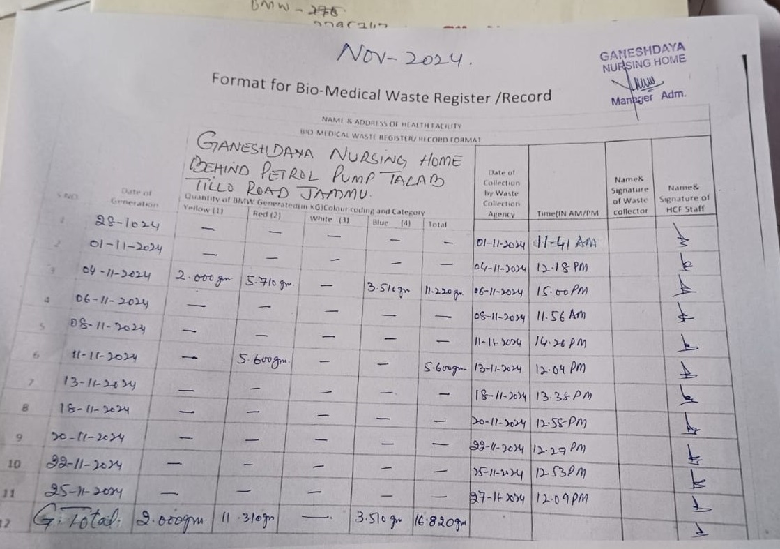 Monthly Report of Bio Medical Waste from the Month of November 2024.