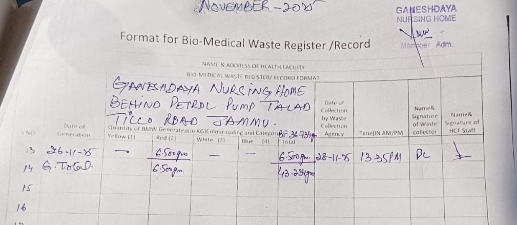 Monthly Report of Bio Medical Waste from the Month of November 2025.