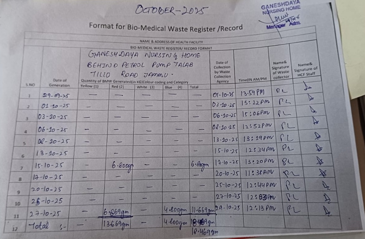 Monthly Report of Bio Medical Waste from the Month of October 2025.