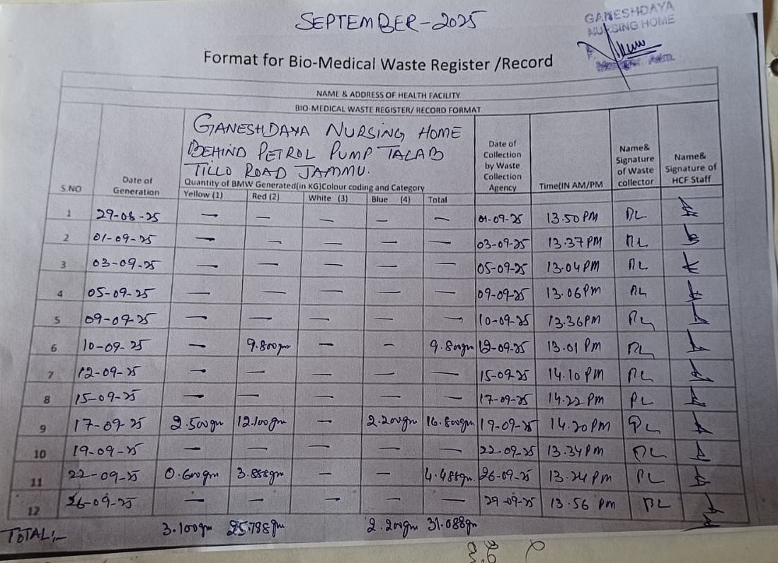 Monthly Report of Bio Medical Waste from the Month of September 2025.